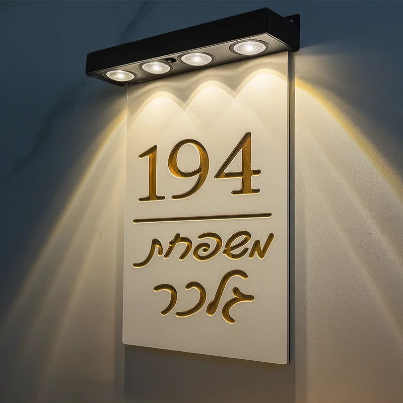 שלט מספר בית סולארי אקריל מואר – עיצוב בהתאמה אישית