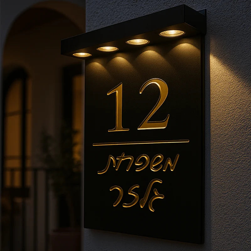 • עיצוב עברי בהתאמה אישית – שם משפחה + מספר בית. ✍️