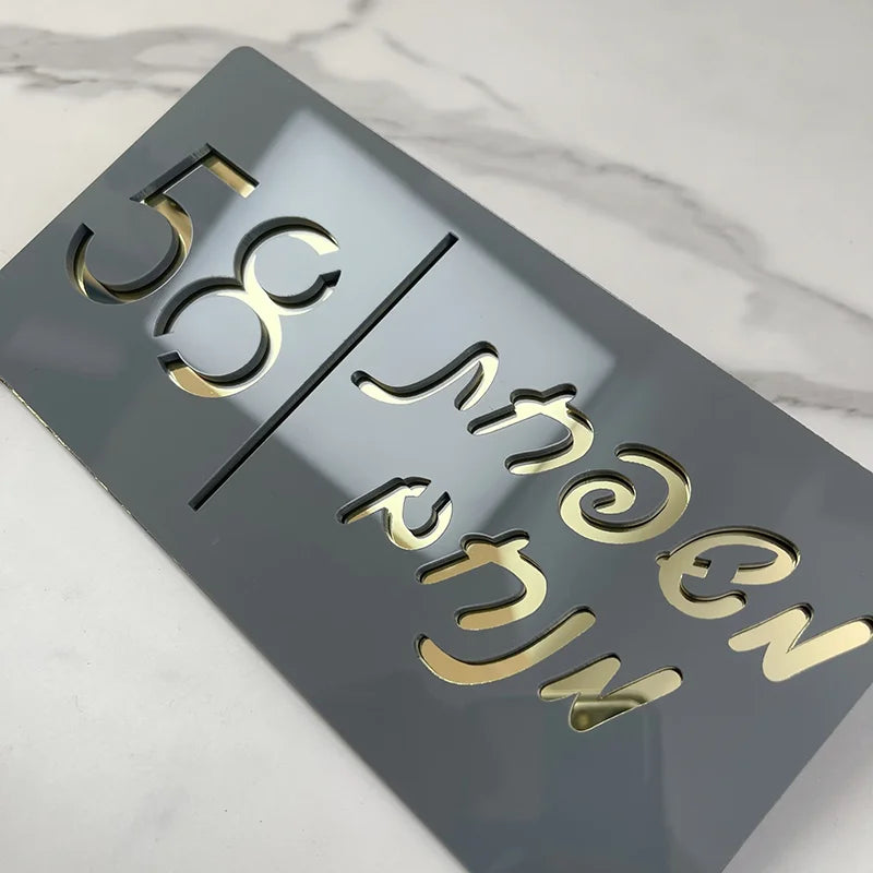 שלט כניסה יוקרתי בעיצוב נקי ומודרני, עשוי אקריליק 3D איכותי ועמיד במיוחד. מושלם לכל בית או דירה שרוצים מראה אישי ומרשים כבר מהכניסה.